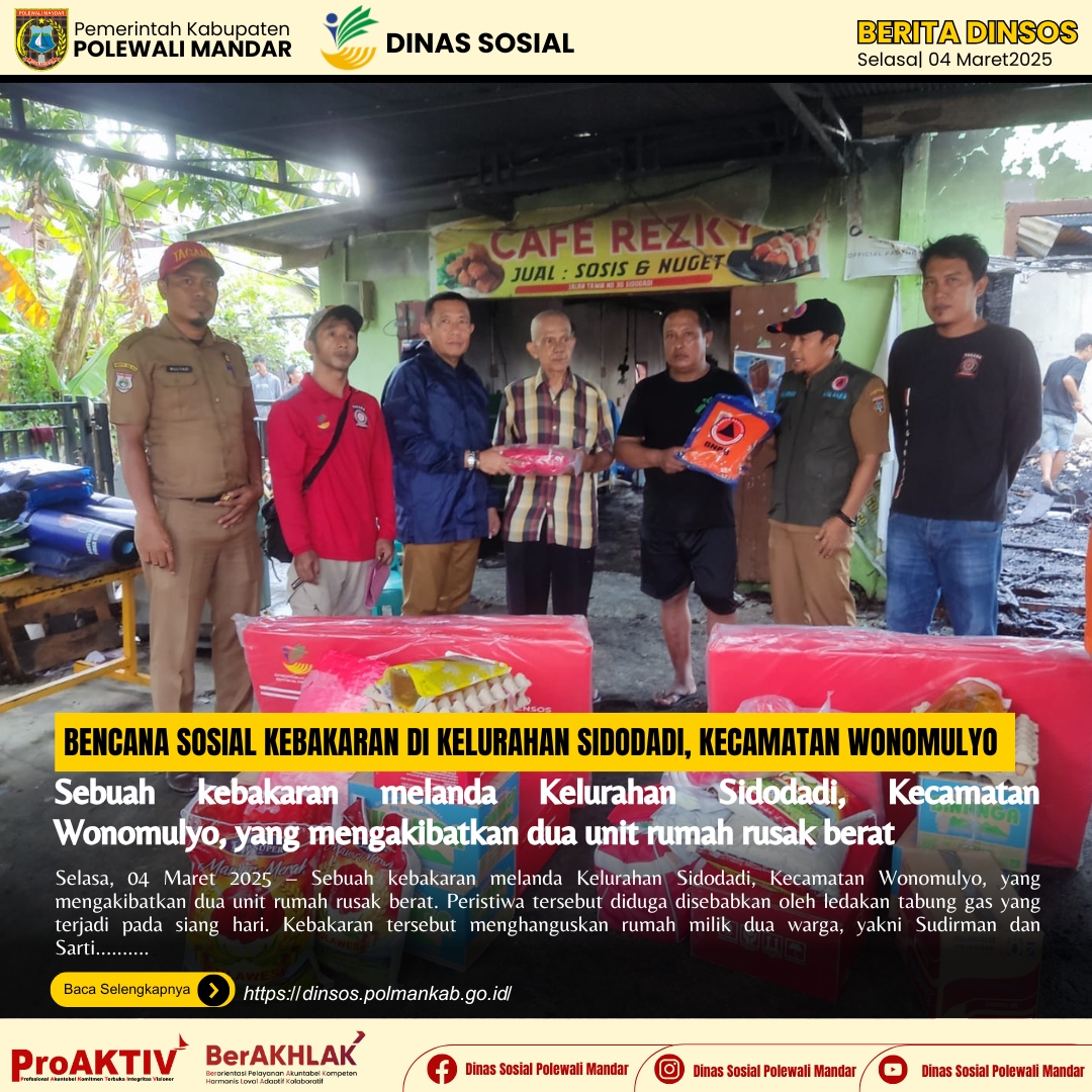 Pendistribusian Bantuan untuk Korban Kebakaran di Desa Panyampa Campalagian, 7 Oktober 2025Dinas Sosial Kabupaten Polewali Mandar melakukan pendistribusian bantuan kepada warga yang menjadi korban ke...